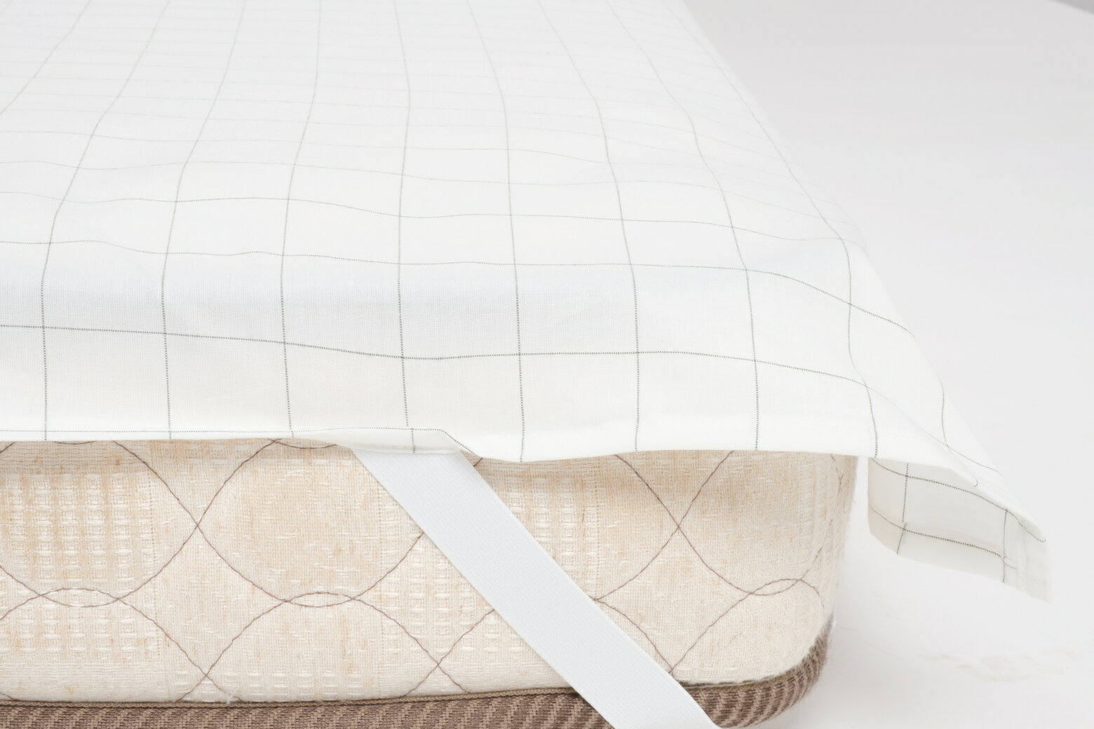 アーシングフラットシーツ コットン シングル 3点セット アースチェッカー コード付き 床面100x200cm ゴムバンド付 色 ホワイトの 格子柄 高耐久 感触良 オリジナル商品 日本製