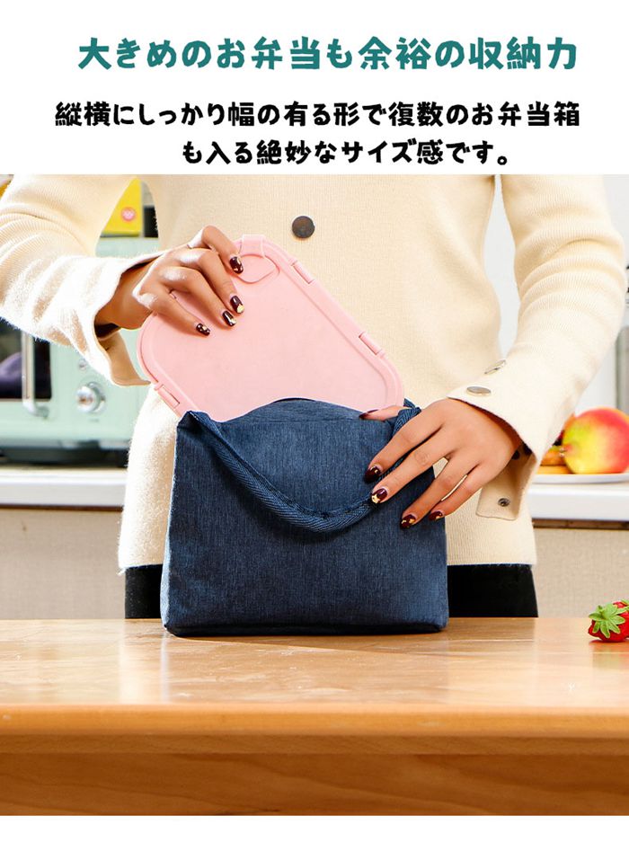 【品番】tuolv01 【商品詳細】 サイズ:縦17cm×横20cm×幅15cm 重 さ:98g カラー: ネイビー ブラック グレー ワインレッド 大容量のランチバッグ! お弁当箱やお箸、果物などをまとめて持ち歩くことができます。 お弁当が斜めにならないよう、底は適度な幅がある設計。 ※写真の色味と実際の色味は異なる場合がありますので、ご了承ください