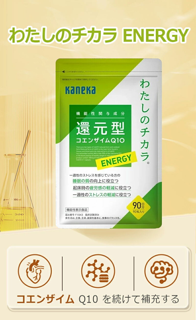 【正規取扱店】カネカユアヘルスケア 還元型コエンザイムQ10 わたしのチカラ ENERGY 90粒入り 90日分 機能性表示食品 倦怠感 睡眠の質 還元型 コエンザイム Q10 疲労感 高純度 疲れ だるさ 活力あふれる毎日を応援する 飲みやすいパウダータイプ