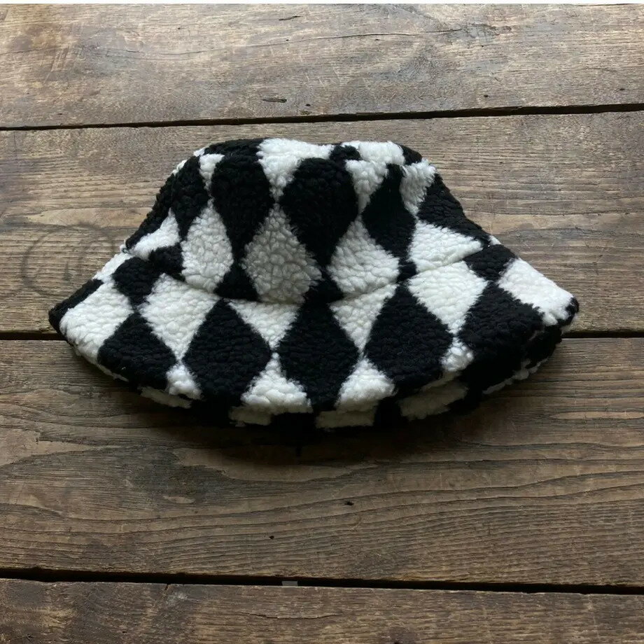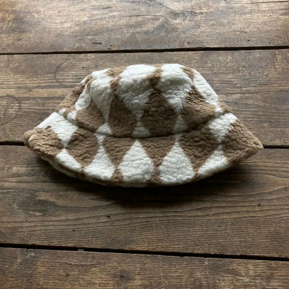 【在庫処分・大特価】キッズ チェック ボア ニット バケットハット 可愛い おしゃれ ユニセックス 冬 韓国風 check boa buckethat