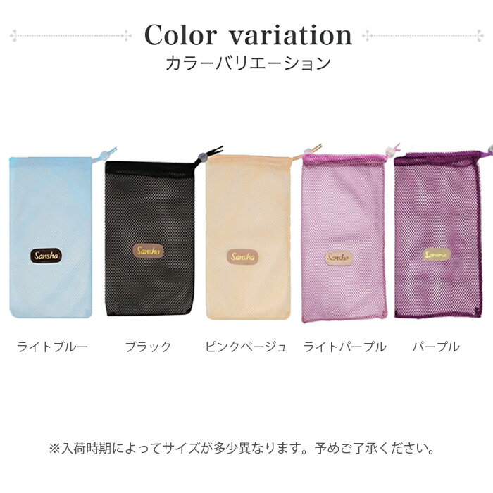 【サンシャ】のメッシュシューズケースです。 メッシュ素材なのでお稽古後の湿ったバレエシューズや トゥシューズを入れるのに最適なシューズケースです。 とても軽く、持ち運びしやすい大きさです♪ 箔押しのサンシャのロゴがオシャレ! ____________________ 商品名:【サンシャ】メッシュシューズケース 自社コード:San-MESH2 カラー:ピンクベージュ、ブラック、ライトブルー、パープル、ライトパープル サイズ:約14.5×27cm 素材:ポリエステル ブランド:サンシャ(フランス) Made in China ____________________ ※必ずご確認ください※ ■商品の上部中央にあるメーカーロゴのタグですが、入荷時期によってロゴの字体が 異なります。ロゴの字体をお選びいただけません。 また、製造上、ロゴマークの箔押しがずれていたり、かすれていることがございます。 良品範囲となりますため、予めご了承の上、ご注文下さいますようお願い申し上げます。 ■メーカーロゴタグ部分は複数のお色がありますが、お色はお選びいただけません。 大変恐れ入りますが、あらかじめご了承ください。 ■ご自宅用でのご注文をおすすめいたします。 (贈り物用にご希望の程度の美品をご用意することは難しくなっておりますこと、 何卒ご理解ご了承ください)※必ずご確認ください※ ■商品の上部中央にあるメーカーロゴのタグですが、製造上、ロゴマークの箔押しがずれていたり、かすれていることがございます。 良品範囲となりますため、あらかじめご了承の上、ご注文下さいますようお願い申し上げます。 ■メーカーロゴタグ部分は複数のお色がありますが、お色はお選びいただけません。大変恐れ入りますが、あらかじめご了承ください。 ■ご自宅用でのご注文をおすすめいたします。(贈り物用にご希望の程度の美品をご用意することは難しくなっておりますこと、何卒ご理解ご了承ください) ※入荷時期によって、ロゴの字体が異なります。ロゴの字体をお選びいただくことはできません。あらかじめ、ご了承くださいませ。 【サンシャ】のメッシュシューズケースです。 メッシュ素材なのでお稽古後の湿ったバレエシューズや トゥシューズを入れるのに最適なシューズケースです。 とても軽く、持ち運びしやすい大きさです♪ 箔押しのサンシャのロゴがオシャレ!