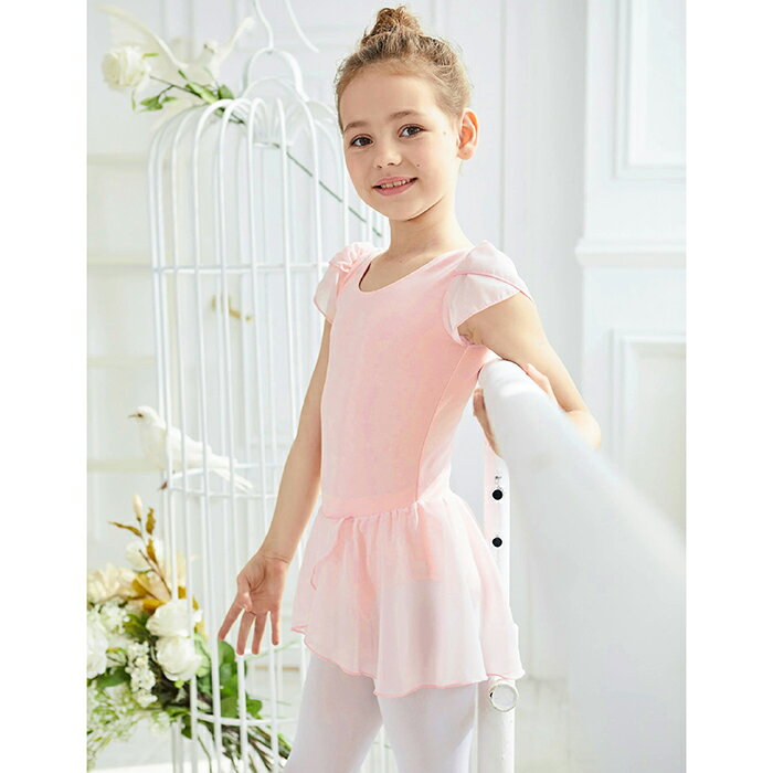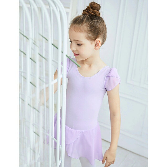 バレエ スカート レオタード 子供 子ども スカート付き シフォンスカート レオタード フリルスリーブ 半袖 AM000058-03 ジュニア キッズ こども おしゃれ コットン 綿 レッスン 練習 着 シンプル 可愛い 黒 ブラック ピンク 水色 ブルー パープル 紫 100 110 120 130