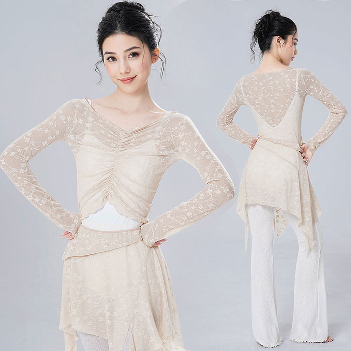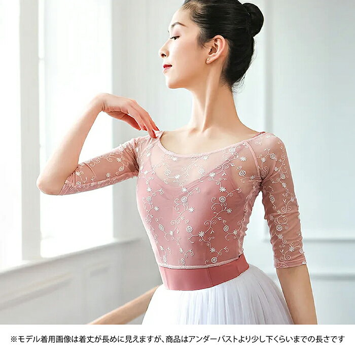 バレエ トップス 小花柄 刺繍 メッシュトップス(5分袖)M2033 ジュニア・大人用 長袖 ストレッチレース メッシュ おしゃれ レッスン 練習 着 バレエ用品 バレエウエア ピンク グリーン 緑 パープル 紫 グレー 145 150 155 160 165 170