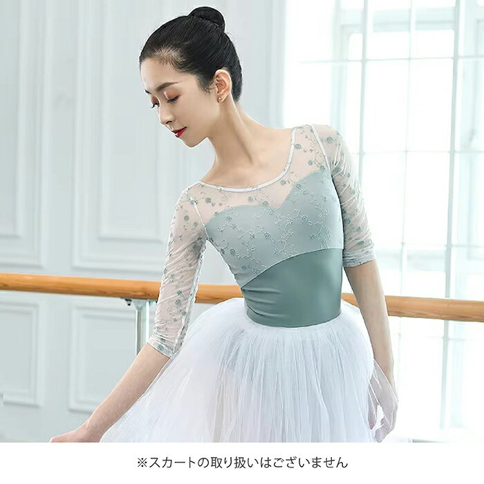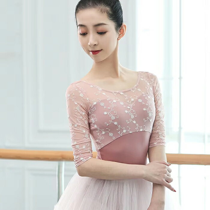 バレエ レオタード 小花柄メッシュレオタード 5分袖 M1068 ジュニア・大人 バストポケット付き 半袖 メッシュ おしゃれ ストレッチ 伸縮 花柄 刺繍 レッスン 練習 着 グリーン 緑 ピンク 145 150 155 160 165 170