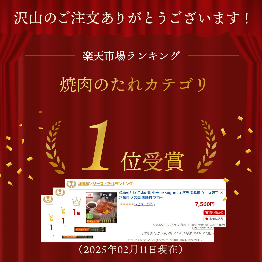 【25日限定!10%OFFクーポン25日0時〜】焼肉のたれ 黄金の味 中辛 1550g ×6 エバラ 業務用 ケース販売 送料無料 大容量 調味料 プロ仕様 焼肉 焼き肉 BBQ バーベキュー タレ 本格 焼肉のタレ ソース 焼肉屋 レストラン ホテル キャンプ お肉 エバラ食品 美味しい 人気