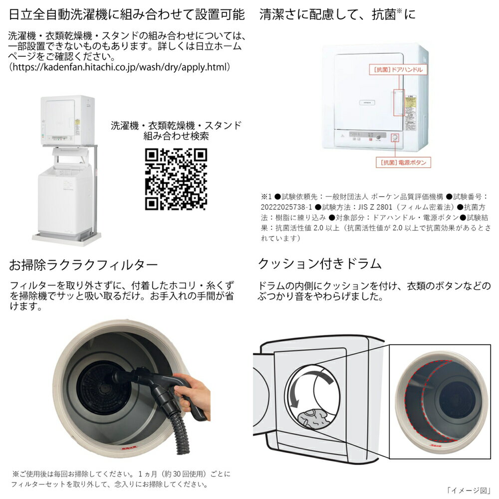 日立(HITACHI) DE-N40HX-W ピュアホワイト 衣類乾燥機 低温乾燥コース搭載 容量4kg