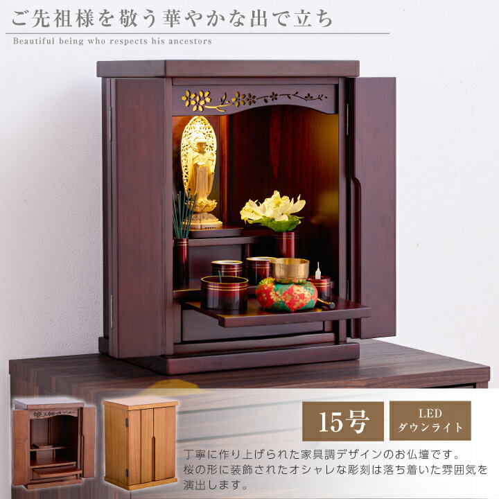 仏壇 モダン ミニ ミニ仏壇 15号 小型仏壇 桜柄 仏壇 コンパクト インテリア仏壇 仏壇 / インテリア仏壇 デザイン仏壇 家具調 おしゃれ 送料無料 sanjp-b0002