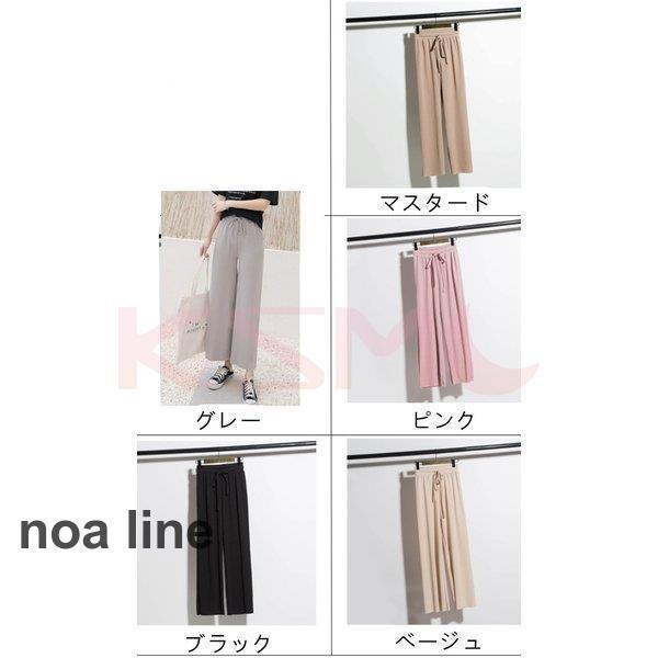 ワイドパンツ レディース 春夏秋冬 ハイウエスト リボン ウエストゴム ガウチョ ロングパンツ ボトムス S M L XL XXL グレー ブラック ピンク ベージュ