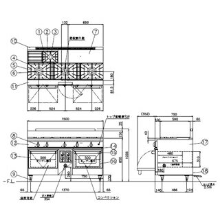 コメットカトウ ガスレンジ DX2シリーズ D=750 レンジタイプ 1500×750×850 DXH2-1575F 12A・13A(都市ガス)【メーカー直送/後払い決済不可】【ECJ】