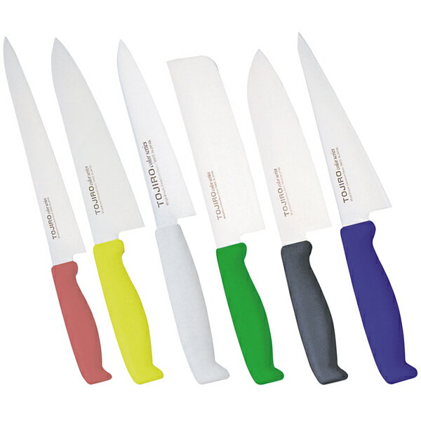 ●関連ワード【 ペティナイフ 薄刃包丁 和包丁 洋包丁 洋出刃包丁 柳刃包丁 包丁 フルーツナイフ 万能包丁 菜切包丁 出刃包丁 ガラスキ 骨スキ カラー包丁 蛸引包丁 牛刀 サーモンナイフ 刺身包丁 三徳包丁 正夫(柳刃) 筋引包丁 】【kisi-13-0126】スタンダード(STD)抗菌PC(ツバ付)6色カラー展開により、食材ごとに使い分けができます。刃は錆にくいモリブデン鋼、柄は抗菌仕様の樹脂柄(耐熱温度150℃)となります。7 ペティ(両刃) [ CHPC-01 ]8 牛刀(両刃) [ CHPC-02 ]9 筋引(両刃) [ CHPC-03 ]0 三徳(両刃) [ CHPC-04 ]a 菜切(両刃) [ CHPC-05 ]b 骨スキ角(両刃) [ CHPC-06 ]トウジロウ 抗菌カラー包丁(モリブデンバナジウム鋼)TOJIRORこれからの衛生管理の決定版。HACCP 対応工場に最適樹脂一体成形モリブデンバナジウム鋼Molybdenum Vanadium Steel● エラストマー樹脂インサート成形により口元からの水、雑菌の侵入を防ぎます。● 熱湯殺菌(100℃ 20 分にも対応)● 抗菌加工されたハンドルカラーを6 色用意。食材別に使用でき衛生管理ができます。● 握りやすく、疲れない、滑りにくい耐久性抜群のエラストマー樹脂性ハンドル● 刀身には、手術用メスにも使用されるモリブデンバナジウム鋼を採用し、切れ味に持続性にも優れます。※ 包丁殺菌庫など紫外線を照射する場所に長時間保管しないで下さい。抗菌剤の特性上表面に白い粉状の物質が発生する可能性があります。1 牛刀(両刃) [ CHEA-01 ]2 ペティ(両刃) [ CHEA-02 ]3 筋引(両刃) [ CHEA-03 ]4 骨スキ(片刃) [ CHEA-04 ]5 薄刃(両刃) [ CHEA-05 ]6 三徳包丁(両刃) [ CHEA-06 ]→単品での販売はこちら