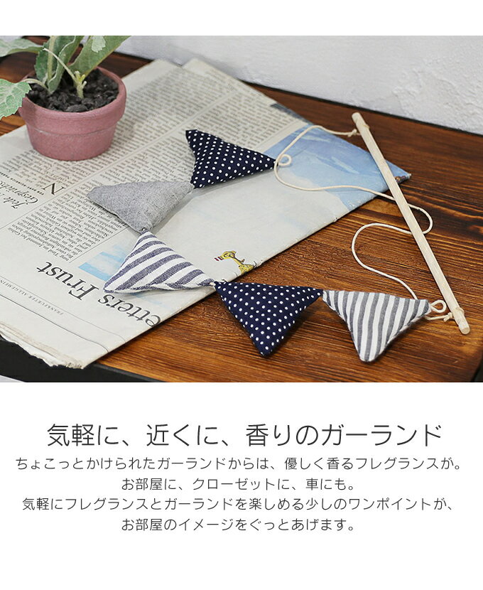 ちょこっとかけられたガーランドからは、優しく香るフレグランスが。お部屋に、クローゼットに、車にも。 気軽にフレグランスとガーランドを楽しめる少しのワンポイントが、お部屋のイメージをぐっとあげます。商品詳細 商品名mercyu フレグランスガーランド 品番:MRU-62N ポイントちょこっとかけられたガーランドからは、優しく香るフレグランスが。お部屋に、クローゼットに、車にも。 気軽にフレグランスとガーランドを楽しめる少しのワンポイントが、お部屋のイメージをぐっとあげます。 サイズ約幅23×奥行1.2×高さ32cm 素材本体(布)/綿、本体(ビーズ)/EVA樹脂、引掛け用スティック/竹、ひも/綿 主成分DPM、香料 重さ約30g 芳香期間約2ヶ月 付属品引掛け用スティック
