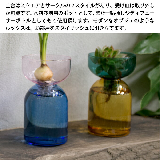 土台はスクエアとサークルの2スタイルがあり、受け皿は取り外しが可能です。水耕栽培用のポットとして、また一輪挿しやディフューザーボトルとしてもご使用頂けます。モダンなオブジェのようなルックスは、お部屋をスタイリッシュに引き立てます。商品詳細 商品名TWO TONE VASE 花瓶 Circle ポイント土台はスクエアとサークルの2スタイルがあり、受け皿は取り外しが可能です。水耕栽培用のポットとして、また一輪挿しやディフューザーボトルとしてもご使用頂けます。モダンなオブジェのようなルックスは、お部屋をスタイリッシュに引き立てます。 サイズ約幅8.2×奥行8.2×高さ14.5cm 素材耐熱ガラス 重さ約220g 生産国中国 ご注意事項お使いのモニターの性能・環境・設定によって、実際の商品と色見が異なる場合がございます。