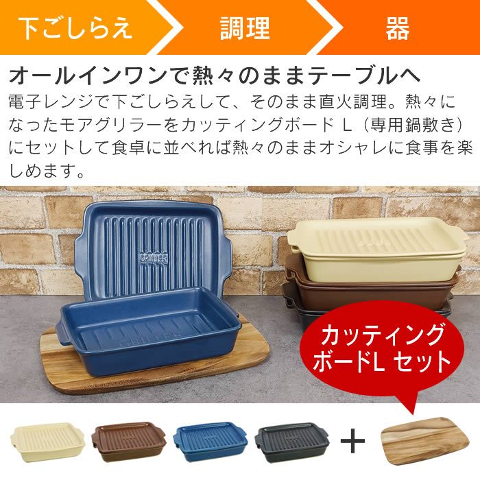 調理するうつわ MoreGRILLER & カッティングボード / グリルパン グリラー 魚焼きグリル 調理する器 蓋付き 陶器 北欧 日本製 プレート 耐熱皿 耐熱陶器 電子レンジ対応 イブキクラフト マイスターハンド TOOLS 伊吹物産