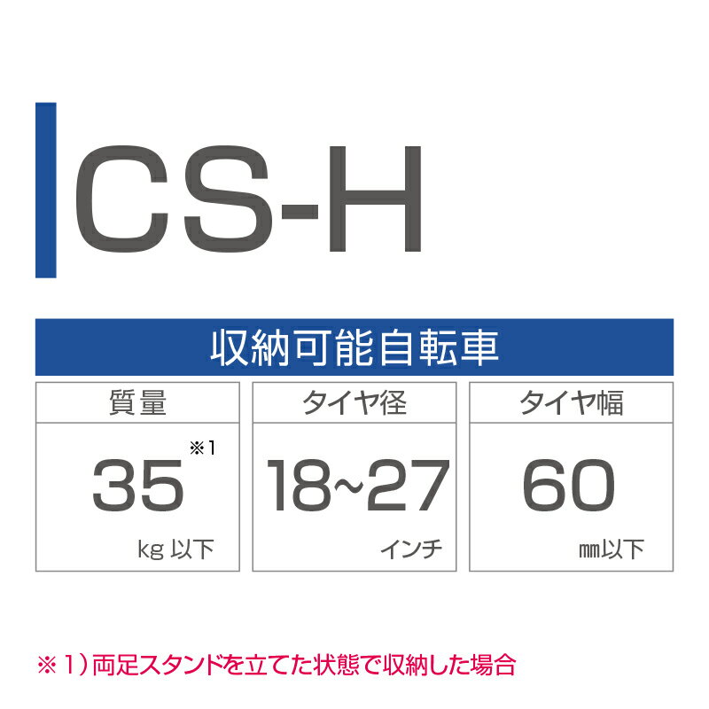 ご購入前の注意点・原則1階での引き渡しとなります。(上位階への配送不可)・午前・午後等の時間帯を含め、配達日時はご指定いただけません。■サイズ:幅100x奥行520x高さ710mm■材質:スチール■付属品アンカーボルト スチールM8 2本独立式サイクルスタンド土台を使用しない独立タイプ。施工場所に合わせて自由に設置可能。シンプルで使いやすい前輪差し込みタイプ。■収納可能自転車●質量:35kg以下 ※両足スタンドを立てた状態で収納した場合。●タイヤ径:18〜27インチ●タイヤ幅:60mm以下※注意●CS-Hは18インチ以上の自転車の標準サイズで設定されています。●自転車のサイズや形状により、収納できない場合があります。●前輪に速度センサーが付いている場合は収納できない恐れがあります。●後カゴ付自転車が連続している場合には、うまく収納できない場合があります。●ラック取付ピッチは、高低が交互となる組み合わせで350mm以上(カゴ付き自転車の場合は400mm以上)をおすすめします。高高または低低の場合は600mm以上をおすすめします。