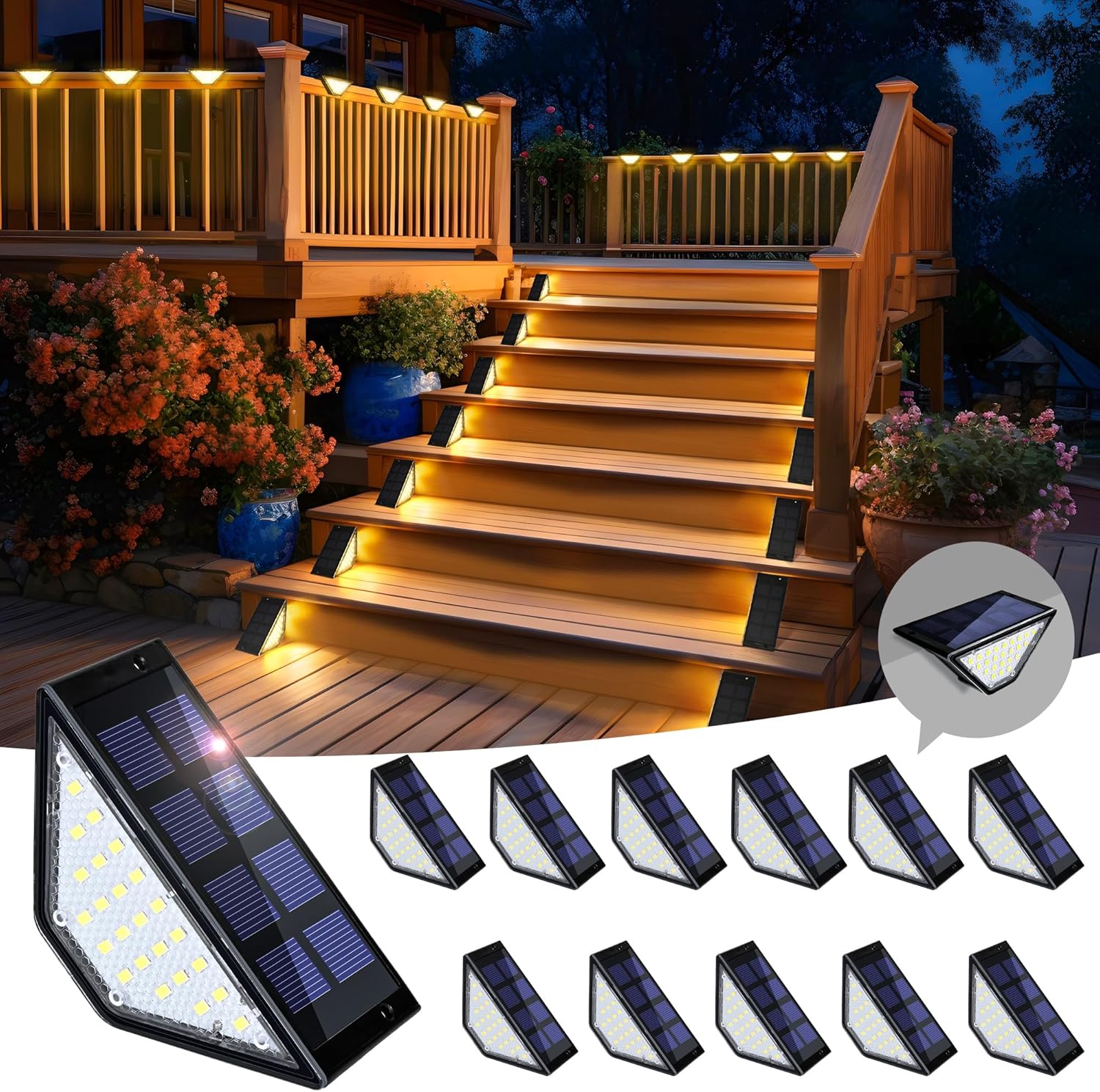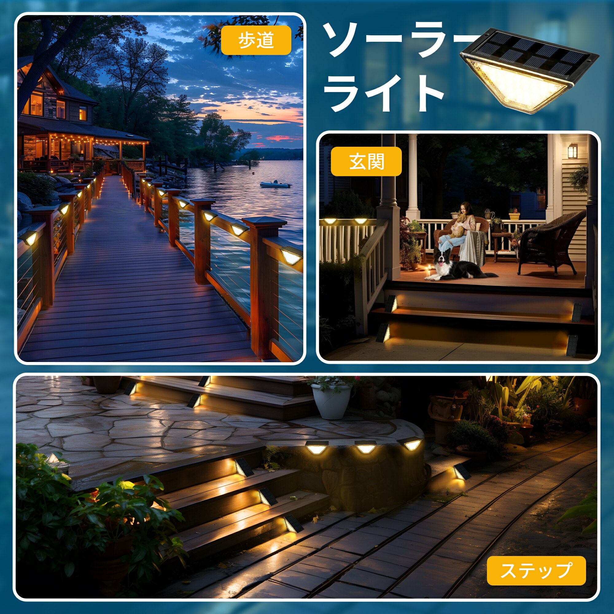 ★5倍ポイント+最大2000円オフクーポン★ ソーラーライト 屋外 階段ライト LED ソーラー デッキ ライト ガーデンライト IP67防水 フェンスライト アウトドア ライト テラスライト ソーラー充電 通路 警告 庭 ライト 玄関 歩道 軒 ガーデン 自動点灯 透明デザイン 電球色