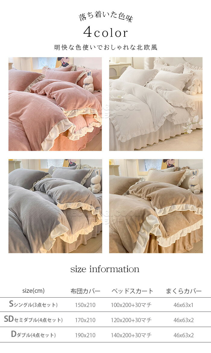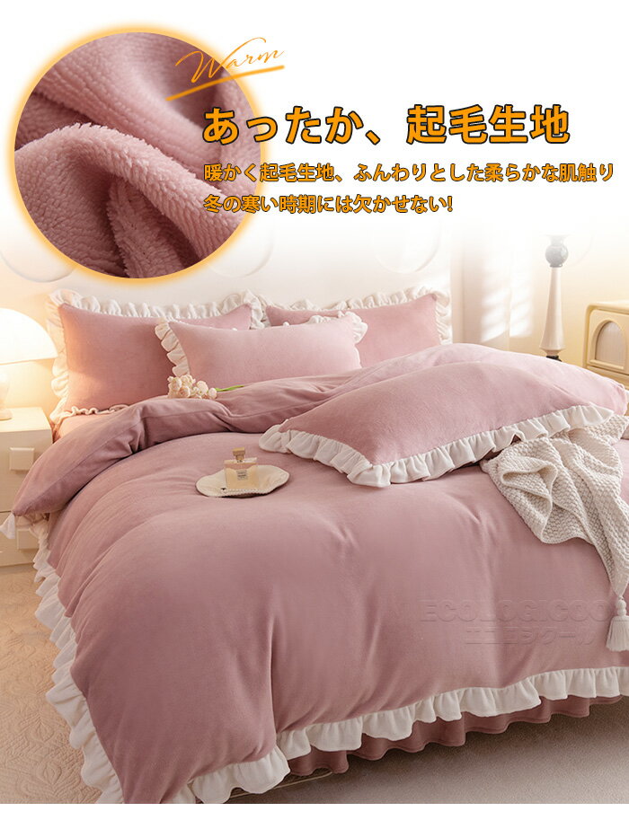 布団カバー セット 布団カバー シングル あったか シングル セミダブル フリル 北欧 おしゃれ 冬用 起毛 暖かい 布団カバーセット ウォッシャブル ベッドスカート 可愛い 掛け布団カバー まくらカバー 清潔 4点セット 姫系 丸洗いOK