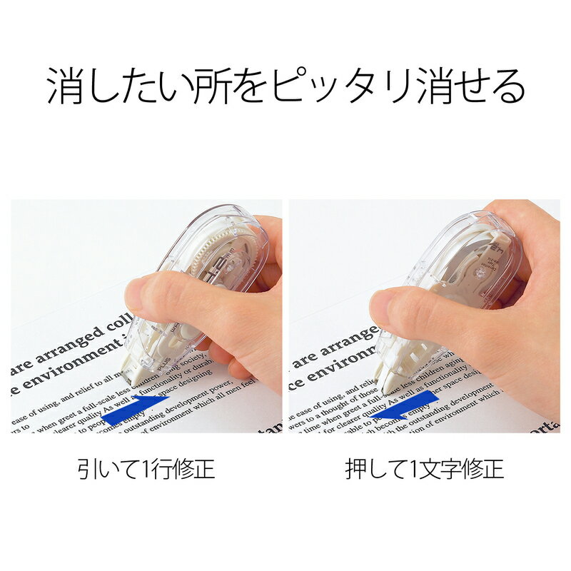 メーカー希望小売価格はメーカーカタログに基づいて掲載しています※こちらの商品は受注発注商品の為、ご注文後3〜5営業日後の出荷予定となります。※メーカー在庫切れの為1週間以内に出荷できない場合はメールにてご案内させていただきます。◆主な特長★テープ巻き取り機構でテープのたるみをラクラク解消・・ヘッドの動きでテープのたるみを補正!いつもテープがピンと張った状態できれいに修正できます。スライドレバーでヘッドが収納できるキャップレス構造なので、片手でサッと使えて効率的です。★ミニローラーヘッド採用でなめらかな使い心地・・先端のミニローラーが修正部分に密着。ヘラ式に比べてテープの引きが軽くなめらかです。また多少の傾きにもヘッドが紙面に密着し、ピタッと転写できます。★「引いて」1行、「押して」1文字。消したい部分を確認しながら修正できるので、細かい所もきれいに修正できます。◆商品仕様商品名修正テープホワイパースライド 4.2mm幅 WH-014 メーカー品番WH-014注文コード42-800JAN4977564411831規格・寸法★外形寸法:W89.8×D22.5×H38.6mm?★テープの長さ:10m?材質★材質:70%再生樹脂(本体ケース=100%再生アクリロニトリルスチレン(AS))?
