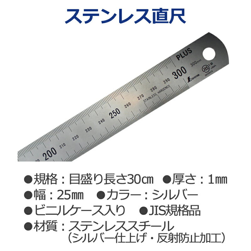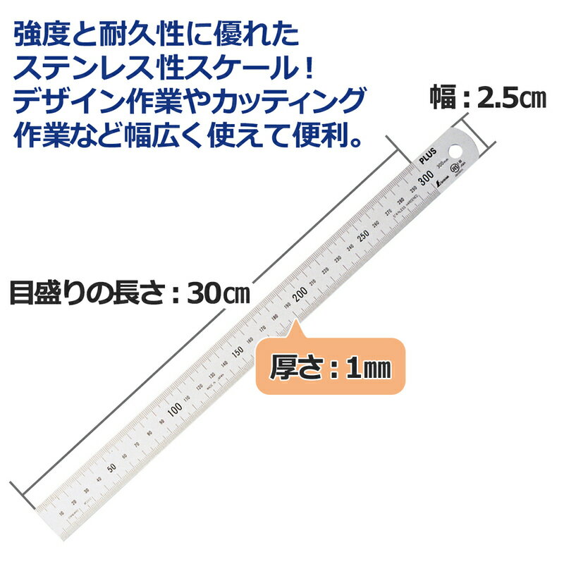 【11/25(火)24h限定★抽選で2人に1人が最大全額ポイントバック★要エントリー】プラス(PLUS)定規 ステンレス直尺 30cm 1.0mm厚 シルバー 47-742