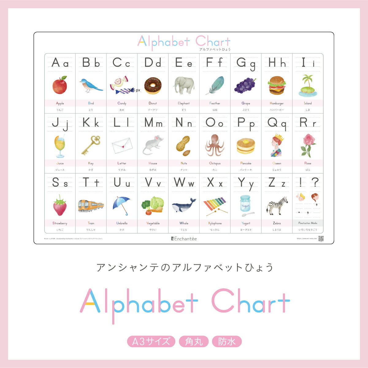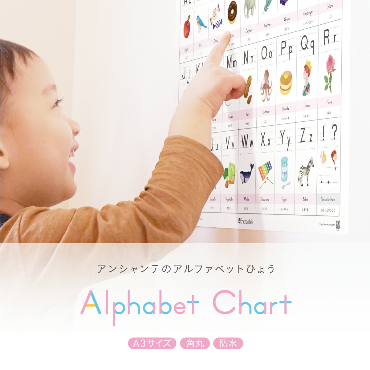 アンシャンテのアルファベットひょう【Alphabet Chart】A3・角丸・防水 知育 学習ポスター アルファベット表 バイリンガル 英語 ポスター おしゃれ 書き順 ギフト 入園 入学 アルファベット お風呂 子供部屋 インテリア