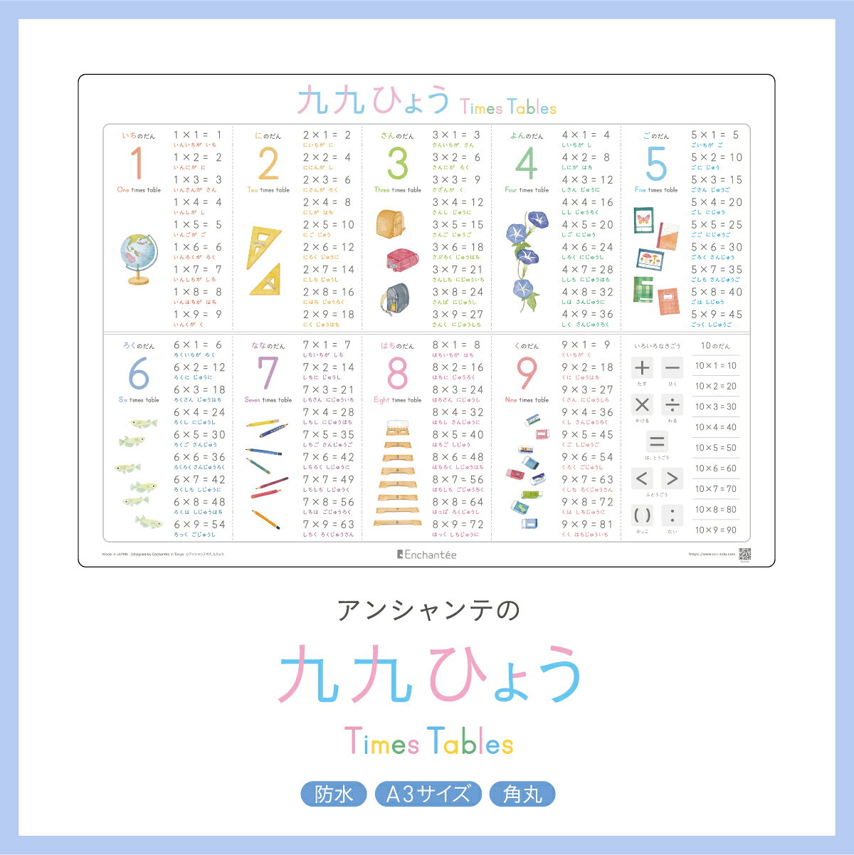 アンシャンテの九九ひょう【Times Tables】防水・A3・角丸 九九表 お風呂 ポスター 学習ポスター インテリア 九九 おしゃれ ギフト 入園 入学 算数 シンプル