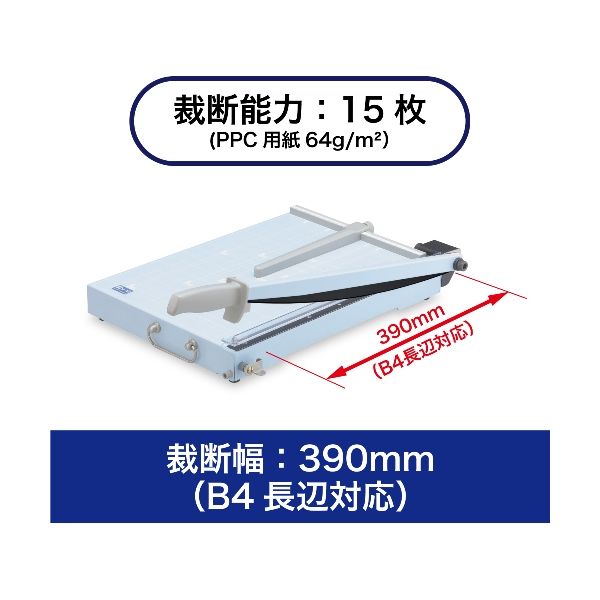 ●円弧状の強力刃によりラクラク裁断できます。指が刃に当たらない安全設計です。持ち運びに便利な手提げ金具付です。使用しない時や持ち運ぶ際に刃が開かず安全です(ハンドルロック付)。横ガイドの目盛に縦ガイドをセットすると指定の寸法に裁断できます(マグネット付でしっかり固定)。●裁断能力(PPC用紙64g/m2):15枚●裁断幅:390mm(B4版)●テーブルサイズ:W307XD425mm●テーブル:鉄板●4000g4970115549229補足商品ワード:測定器・工具のイーデンキ edenki OA・事務用品 パンチホッチキス ホッチキス オフィス 文具 文房具 DIY ホビー 工作 STAPLERS類似商品はこちらオープン工業 SA-204 スチール裁断機A411,185円オープン工業 SA-202 スチール裁断機A314,722円直送・代引不可 オープン工業 ペーパー裁断器 20,144円直送・代引不可 オープン工業 新スチール裁断器18,843円直送・代引不可 オープン工業 裁断器 B4サイ19,969円直送・代引不可 オープン工業 新スチール裁断器18,429円直送・代引不可 (まとめ)オープン工業 裁断器57,953円直送・代引不可 オープン工業 ペーパー裁断器 17,182円直送・代引不可 オープン工業 ペーパー裁断器 22,949円直送・代引不可 オープン工業 新スチール裁断器16,082円直送・代引不可 オープン工業 新スチール裁断器21,458円直送・代引不可 オープン工業 裁断器 A4サイ17,143円