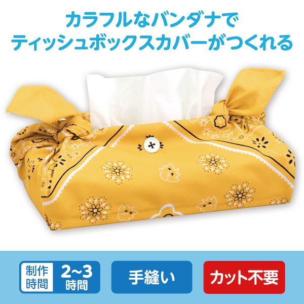 【商品説明】●バンダナでつくる、ティッシュボックスカバーの手芸キットです。布をカットする必要がなく、すぐに作り始められるので初心者さんにも安心。製作時間は約2〜4時間が目安です。まつり縫いやボタン付けなどの基礎的な縫い方を学べるので、裁縫の入門にもぴったり。気軽にハンドメイドを楽しみながら、実用的でおしゃれなティッシュボックスカバーを作ることができます。※ボタンの種類は変更になる可能性があります。お使いのモニター設定、お部屋の照明等により実際の商品と色味が異なる場合がございます。●商品サイズ:完成サイズ:約240×120×70mm、バンダナ:約550×550mm、ボタン(四つ穴):約φ15mm、スナップボタン:約φ10mm●セット内容:バンダナ×1、ボタン(四つ穴)×1、スナップボタン×2●1個重量(g):56●材質:バンダナ:ポリエステル、ボタン(四つ穴):プラスチック、スナップボタン:真鍮(ニッケルメッキ)●製造国:中国類似商品はこちらアーテック ArTec 050582 バンダナ436円アーテック ArTec 050887 バンダナ436円アーテック ArTec 050584 バンダナ436円アーテック ArTec 050583 バンダナ436円アーテック ArTec 050886 バンダナ436円アーテック ArTec 050885 バンダナ436円アーテック ArTec 050935 バンダナ380円アーテック ArTec 050934 バンダナ380円アーテック ArTec 050936 バンダナ380円アーテック ArTec 050718 バンダナ453円アーテック ArTec 050874 ころころ426円アーテック ArTec 051148 手作り立172円