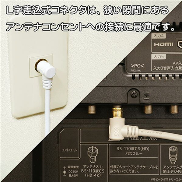 ホーリック アンテナケーブル(両側L字差込式・1m) ホワイト AC10-612WH [AC10612WH]