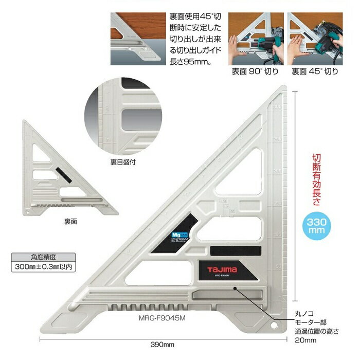 タジマ MRG-F9045M マルノコガイドフロア 90°-45° 切断有効長さ330mm 90度・45度切りが可能 裏目盛付 新品 MRGF9045M TJM【プロ用からDIY、園芸まで。道具・工具のことならプロショップe-道具館におまかせ!】