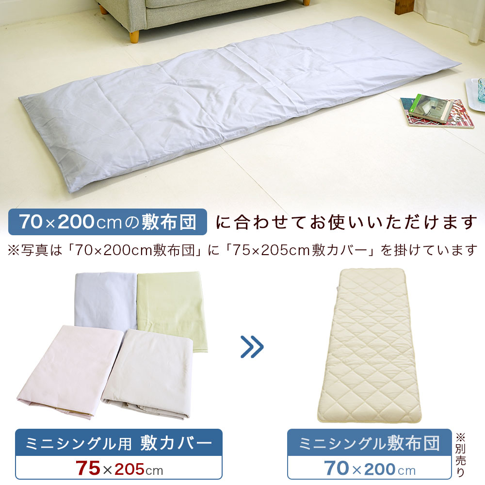 セミシングル用 敷布団カバー 抗菌防臭 日本製 綿100% 75×205cm 無地 70×200cm 敷布団用 セミシングル ちょこ寝S