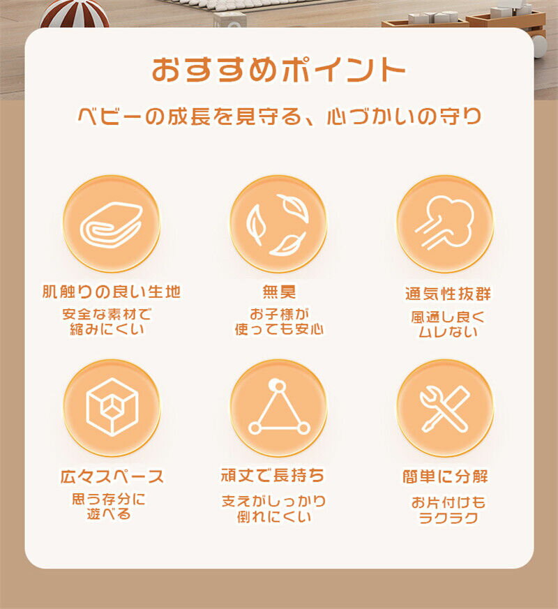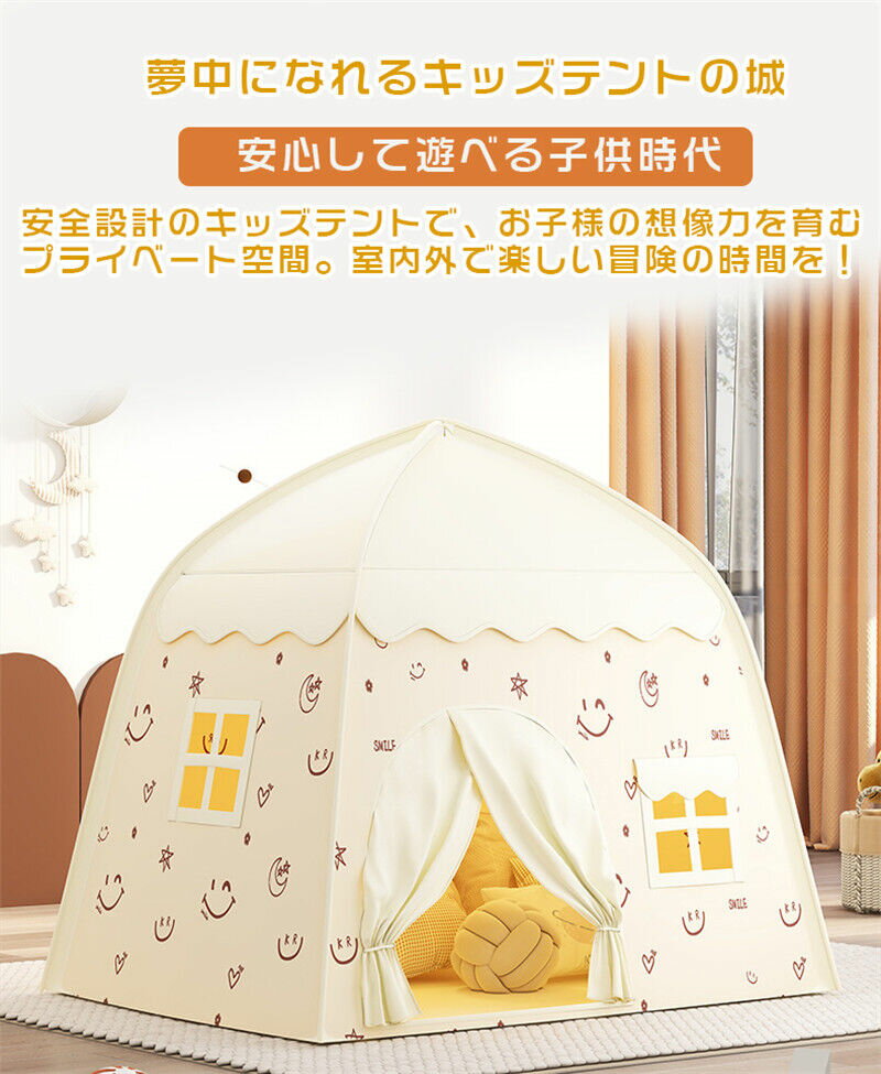 商品情報注意事項※製品品質向上、または製造時期により、予告なくデザイン及び仕様を変更する場合がございます。※生産過程におきまして、若干のサイズ誤差、個体差が生じる場合がございます。※サイトに掲載されている商品は、撮影の照明、またパソコンなどの環境により、画像と実際の商品の色味が多少異なる場合がございます。※本製品は輸入品のため、物流運送の都合により、多少シワや凹み、スレや汚れなどがある場合がございます。※検品のため弊社にてパッケージを開封する場合がございます。※パッケージは予告無く変更になる場合がございます。※本製品を利用したことによる、直接もしくは間接的に生じた損害、破損について当店は一切の責任を負いません。安心保証1.初期不良の保証は7日間となります。到着後7日間以内に不具合がないかをご確認お願いいたします。2.ご不明な点、若しくは初期不良がある場合、お写真/動画付きでお問い合わせください。3.保証期間内におきましても次の場合には対応いたしかねます。3-1.使用上の誤り、不当な修理、改造などによる故障及び損傷3-2.お買い上げ後の落下などによる故障及び損傷3-3.火災、地震、その他の天災地変による故障及び損傷 メーカー希望小売価格はメーカーサイトに基づいて掲載していますキッズテント 折りたたみ 子供テント 室内遊具 ゲームハウス ブルー ピンク 隠れ家 室内ハウス 子供 キッズ 女の子 男の子 北欧 おしゃれ 睡眠テント 設置簡単 ポータブル コンパクト 軽量 おもちゃ クリスマス プレゼント キャンプ ままごと組み立て簡単 出産祝い pvc 子供のためのお城ランド キッズテント 折りたたみ 設置簡単 ポータブル コンパクト 軽量 おもちゃ クリスマス プレゼント キャンプ ままごと 仕様 :素材:ポリエステル+金属ブラケットカラー:写真ご参考サイズ:130*100*130cmセット内容:本体のみお勧めのポイント:【幼い子供のための秘密基地テント】子供たちの遊び場を提供します。誰もが自分自身の小さなスペースを必要としています。お子様にとっての秘密基地を作り、遊んだり寝たりするための特別な空間を提供しましょう。当テントには、おやつやおもちゃ、枕、毛布を収納できます。これからの楽しい時間が待っています。【分な広さとデザイン】快適なスペースをお約束。サイズは高さ130cm、奥行き100cm、幅130cmで、最大の子供でも立ち上がることができ、最大4人の子供が同時に遊ぶのに十分な広さです。大人も座ることができ、両親が一緒に遊ぶことができるので、安心してお子様を見守れます。広いバンドドアと網状窓により、風通しが良く、お部屋の空気の入れ替えもスムーズです。【組立不要で設置が簡単】ただ広げるだけで設置完了。この子供用テントは、面倒な道具や複雑な手順が一切不要です。頑丈な金属ブラケットにより、より便利に設置できます。付属のキャリーバッグに折りたたむこともでき、サイズがコンパクトなので持ち運びも簡単です。【通気性に優れた快適設計】お子様も安心して遊べる。高品質な通気性素材を使用しているため、いつでも涼しく快適です。優れた通気性と空気の対流により、お子様は蒸れることなく楽しく遊ぶことができます。頑丈なテントポールは安全性も考慮されており、安心してお使いいただけます。【様々なシーンで大活躍】遊びの幅が広がるテント。この秘密基地テントは、パーティー、ピクニック、BBQ、遊び場、保育園、学校、カーニバル、お泊まり会など、さまざまなシーンで大活躍します。また、子供部屋に設置することで、おもちゃの一部としてもご利用いただけます。3歳から8歳の男の子や女の子にぴったりのアイテムです。注意事項 :※採寸の方法によってサイズの誤差は多少発生します。ご了承下さい。※撮影の環境、及びご覧になっているモニタによって、画像と実物の色味が違うように見えることがあります。※製品品質向上、または製造時期により、予告なくデザイン及び仕様を変更する場合がございます。※生産過程におきまして、若干のサイズ誤差、個体差が生じる場合がございます。※サイトに掲載されている商品は、撮影の照明、またパソコンなどの環境により、画像と実際の商品の色味が多少異なる場合がございます。※本製品は輸入品のため、物流運送の都合により、多少シワや凹み、スレや汚れなどがある場合がございます。※検品のため弊社にてパッケージを開封する場合がございます。※パッケージは予告無く変更になる場合がございます。※本製品を利用したことによる、直接もしくは間接的に生じた損害、破損について当店は一切の責任を負いません。関連キーワード:ッズテント 子供テント 室内遊具 ゲームハウス 室内ハウス 子供 キッズ ゲームハウス 室内ハウス 折りたたみ 女の子 男の子 子供用ティピーテント 睡眠テント 簡単に組立 ポータブル コンパクト 軽量 通気性 家庭保育園 プレイハウス テント キッズテント 室内用 屋