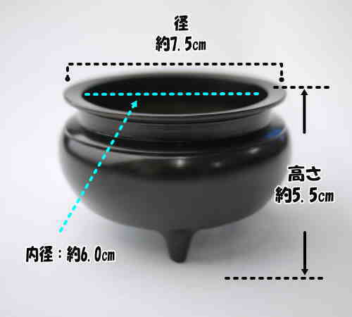 サイズ 【高さ】約5.5cm【外径】約7.5cm【内径】約6cm 商品説明 ・各宗派ご利用いただけます。 ・真鍮製で黒光色です