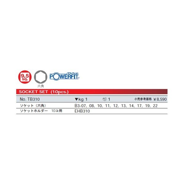 よく使うサイズだけを集めた、KTCの人気ソケットセット! ソケットホルダー付きで、工具箱やツールキャビネットなどに入れておくのに便利です。 出張修理用、車載工具用としても人気のセットです。 ■型式:TB310 ■メーカー:KTC (セット内容) ■ソケット(六角):B3-07/B3-08/B3-10/B3-11/B3-12/B3-13/B3-14/B3-17/B3-19/B3-22 ■ソケットホルダー:EHB310 人気のカテゴリ 新商品 今月の特価品 オリジナル商品 ワケアリ特価品