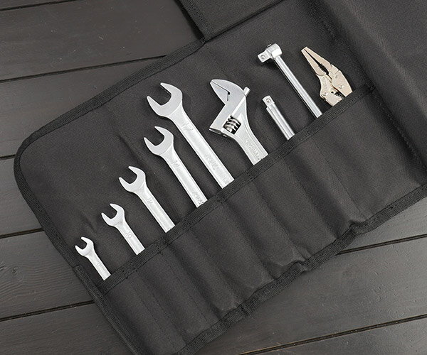 持ち運び時にコンパクトに収まるロールタイプのツールバッグMCKB-Bを採用したツールセット。 ソケットを採用したことにより、スパナ、めがねレンチ等では対応できない凹部の作業を容易にします。 駆動工具は、作業性を考えてスライドヘッドハンドルとエクステンションバーを採用。 ツールバッグは持ち運び時にコンパクトに収まるロールタイプ。面ファスナー留めで、工具の飛び出しを防止します。 ツールバッグを広げることで部品・工具トレイの代わりになります。 2段ポケットを採用する等、セット入組品以外も収納可能なスペースを確保。追加した工具や予備パーツの収納に便利です。 ■型式:MCK3140 ■メーカー:KTC(京都機械工具株式会社) ■ツールバッグ:MCKB-B ■セット入組み点数:14点 ■ラチェット類差込角:9.5sq. ■重量:2kg 人気のカテゴリ 新商品 今月の特価品 オリジナル商品 ワケアリ特価品