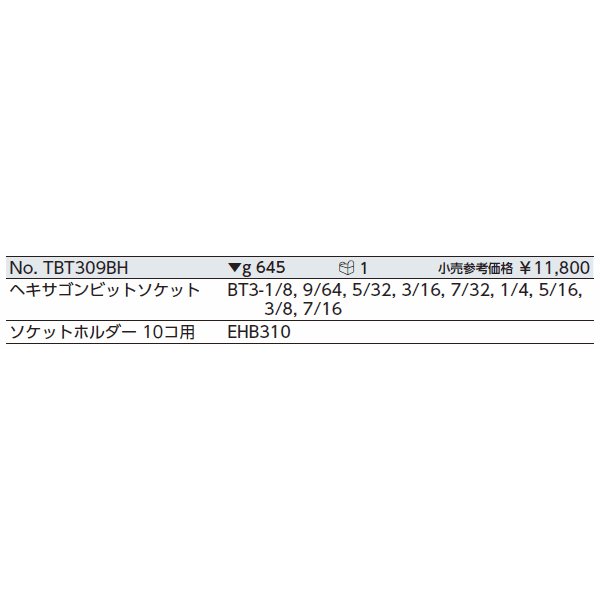 ■型式:TBT309BH ■メーカー:KTC(京都機械工具株式会社) ■セット内容:BT3-1/8, BT3-9/64, BT3-5/32, BT3-3/16, BT3-7/32, BT3-1/4, BT3-5/16, BT3-3/8, BT3-7/16, EHB310 人気のカテゴリ 新商品 今月の特価品 オリジナル商品 ワケアリ特価品