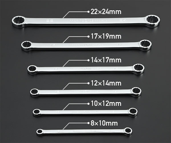 KTCのものずくりの粋を集めた最高傑作! 日本製高級ハンドツール「nepros」のストレートスタンダードめがねレンチ6本セット。 口径部は7°30′の角度を設け、レンチ裏表を使用することにより15°の範囲で作業が可能、さらにヘッド部の厚みを薄くする事により狭い場所での作業性が向上しています。 樹脂トレイ付き(W445×D185×H35)付き。 ※EKB-2(メタルケース)には入りません。 ■型番:NTM106 ■メーカー:KTC ■内容:NM1-0810,1012,1214,1417,1719,2224 人気のカテゴリ 新商品 今月の特価品 オリジナル商品 ワケあり特価品