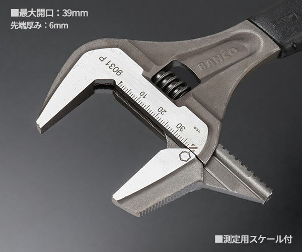 日本正規品 バーコ パイプレンチ兼用大口モンキーレンチ 最大口開き39mm ブラック仕上げ (9031P)(7314150187539) BAHCO【ネコポス対応】