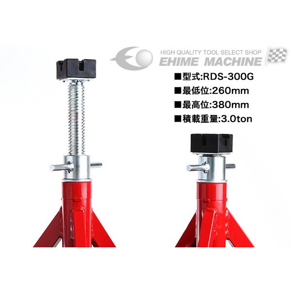 リキマエダ 高級ゴム付き ネジ調整式リジッドラック 3ton RDS-300G 2台セット(馬ジャッキ・ジャッキスタンド)
