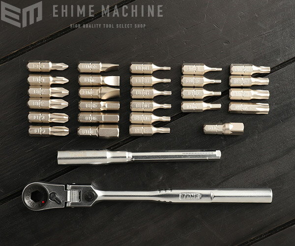 【12/1限定!ポイント3倍+最大400円OFF】TONE オフセット式ビットラチェットセット 29点セット メタルケース入り (BRFS27)(4953488426465) トネ