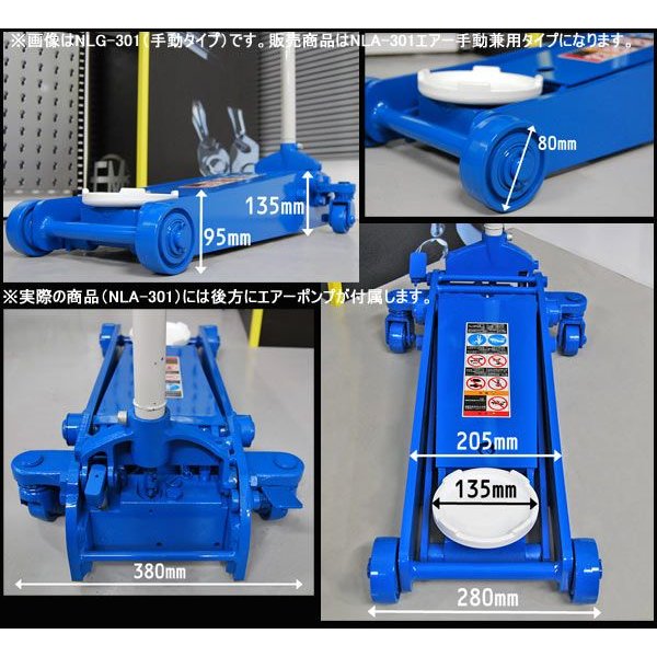 [メーカー直送業者便] 長崎ジャッキ NLA-301 低床 エアーガレージジャッキ 3tonショートタイプ(ベアリング車輪仕様)