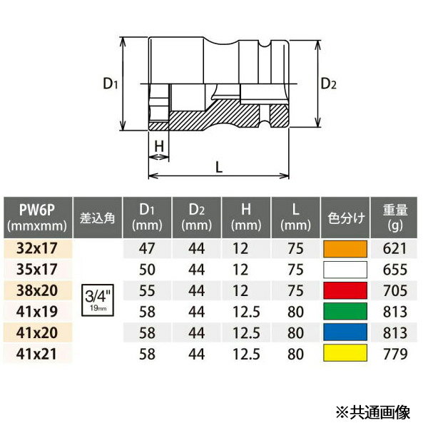 コーケン ホイールナット用コンビソケット PW6P-41X21 差込角19.0mm Ko-ken 工具 山下工業研究所