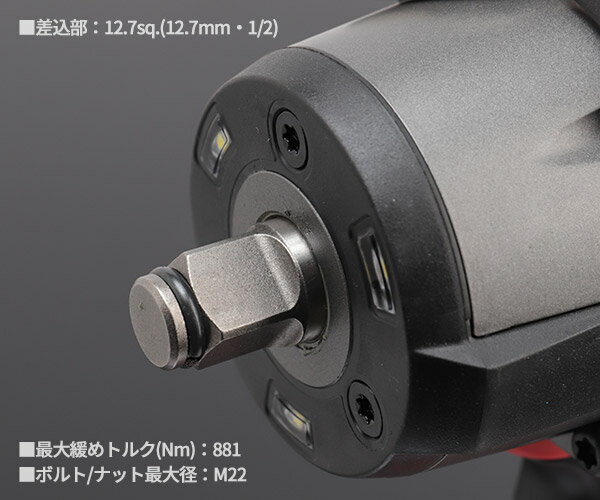 ミルウォーキーのM18シリーズ 充電式インパクトレンチ(本体・ケース付き)です。 ソケット類差込部12.7sq.(12.7mm角、1/2インチ)、最大トルク881Nmの強力タイプ。 ミルウォーキーなら、シリーズを合わせておけばバッテリーを共通で使えるので、充電残量の心配も軽減できます。 対応ラバーブート 対応バッテリー品番 [参考] 対応充電器品番 [参考] バッテリー(M18 B5 JP)が2個、充電器(M12-18FC JP)が収納できる、専用ケース付きです ※バッテリー、充電器は別売です ヘッドサイズわずか152mmのコンパクトデザインで、最大881Nmの緩めトルク。M22ボルトを1.8秒で取り外し可能です 軽量、コンパクト、ハイスペックの三拍子そろった、自動車整備作業やバイクメンテナンスの現場で重宝するインパクトレンチです 4種類の駆動制御機能を搭載しており、緩め制御モードでは、ボルトの緩みを感知し、回転数を低下させます 安全性能と、ブラシレスモーターの採用で長寿命化を両立させています 自動停止モードで締め過ぎを防止 緩め制御モードでボルトの緩みを感知し回転速度を制御 【セット内容】 本体・ケース ※バッテリー、充電器なし ■メーカー:ミルウォーキーツール・ジャパン ■品番:M18 FMTIW2F12-0X0 JP ■バッテリープラットフォーム:M18 REDLITHIUM-ION ■電圧:18V ■適合:1/2インチソケット類(12.7sq./差込角12.7mm) ■最大トルク:881N・m ■最大ボルト径:M22 ■1分あたり無負荷回転数:1325回転(1325rpm) ■本体寸法:205×152×68mm ■燃料ゲージ:あり ■LEDライト:あり ■質量:1.6kg(5.0Ahバッテリー装着時2.3kg) 保証期間1年+製品登録で最大2年のロング保証。(※バッテリー、充電器は除く/MXシリーズは製品登録延長保証1年) ※M18の「M」はMilwaukeeのMです。(M18=18V) ※M18 FUEL等の「FUEL」はブラシレスモーターの意味です。別のシリーズではありません。(例:M18 FUEL=M18シリーズ) 【ミルウォーキーについて】 およそ100年間工具を開発してきた、世界屈指のコードレス工具メーカー。 「Nothing But Heavy Duty」というスローガンで、耐久性へこだわり、プロ用製品に特化した開発を進めるプレミアムブランド。 リチウムイオン電池式コードレス電動工具を、世界で初めてマーケットに投入したブランドとしても知られています。 カテゴリー別商品一覧