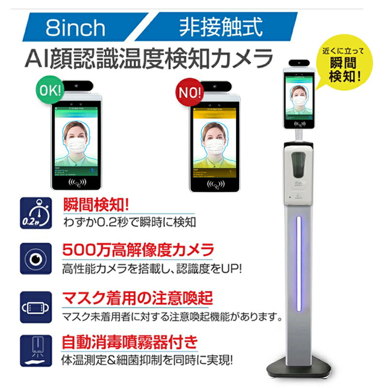 【1年間保証 】AI顔認識温度検知 温度検知カメラ 非接触 検温 温度 体温 自立スタンド付き サーモグラフィーカメラ AI温度センサー マスク有無感知 音声アラーム 体表温度検知カメラ 非接触 消毒測温一体機 オート式ソープディスペンサー