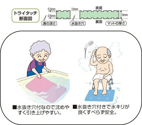 ウェルファン トライタッチ防カビプラス Mサイズ 38×55cm(入浴用品 すべり止めマット お風呂用マット)介護用品