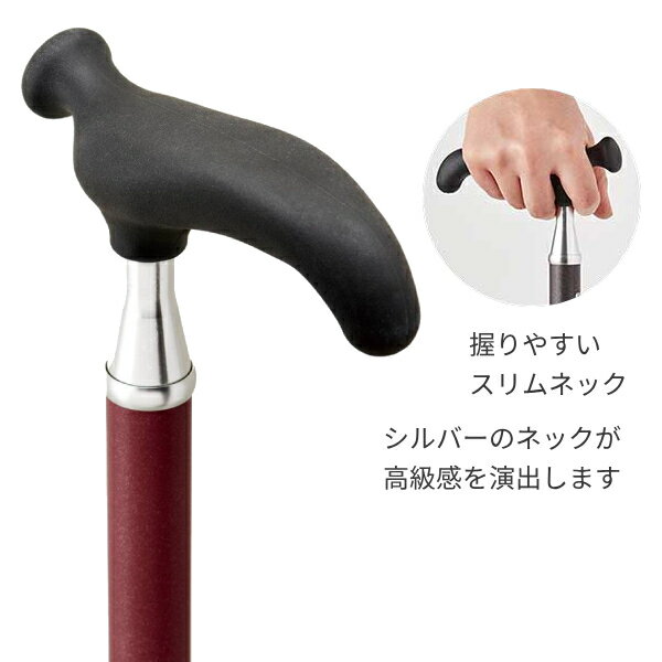 オッセンベルグの技術と日本のニーズを熟知するケイ・ホスピアが共同で開発したスリムネック仕様のリハビリ用T字杖 ・スタイリッシュで機能性も抜群! ・握りやすいスリムネック。シルバーのネックが高級感を演出します ・滑りにくい特殊加工のグリップと安定感のある杖先ゴムによって、壁に立てかけても倒れにくい仕様になっています ・握力の弱い方にもフィットするように手の平に当たる部分は幅広く設計 ・左右どちらの手にも対応します。表面はソフト樹脂を特殊加工で滑りにくくしています ・シャフトには細かなシボ加工が施されており、光を受けると部分的に輝き、美しく風格のある表情を見せてくれます ●カラー/ レザーブラック、レザーブラウン、レザーレッド ●サイズ/ 長さ75〜95cm(9段階)、 ゴムチップ底径:4.3cm ●パイプ径/上部:2.0cm、下部:1.6cm ●適応身長目安/約144〜184cm ●重さ/410g ●材質/シャフト:アルミ合金、グリップ:ソフト樹脂 ●最大使用者体重/120kg ●生産国/ドイツ ●メーカー品番/ レザーブラック:OSS-3 レザーブラウン:OSS-2 レザーレッド:OSS-1 ●JANコード/ レザーブラック:4544634008187 レザーブラウン:4544634008170 レザーレッド:4544634008163 ●メーカー/オッセンベルグ社
