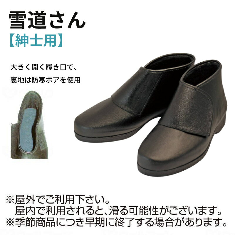 介護シューズ 冬 靴 片足販売 大きく開く 防寒シューズ 裏地ボア 雪道さん 紳士用 スパイク付 3E ブラック 24.0cm〜27.0cm 革シボタイプ ウェルファン 男性用 メンズ 防寒ブーツ 片足 介護用品