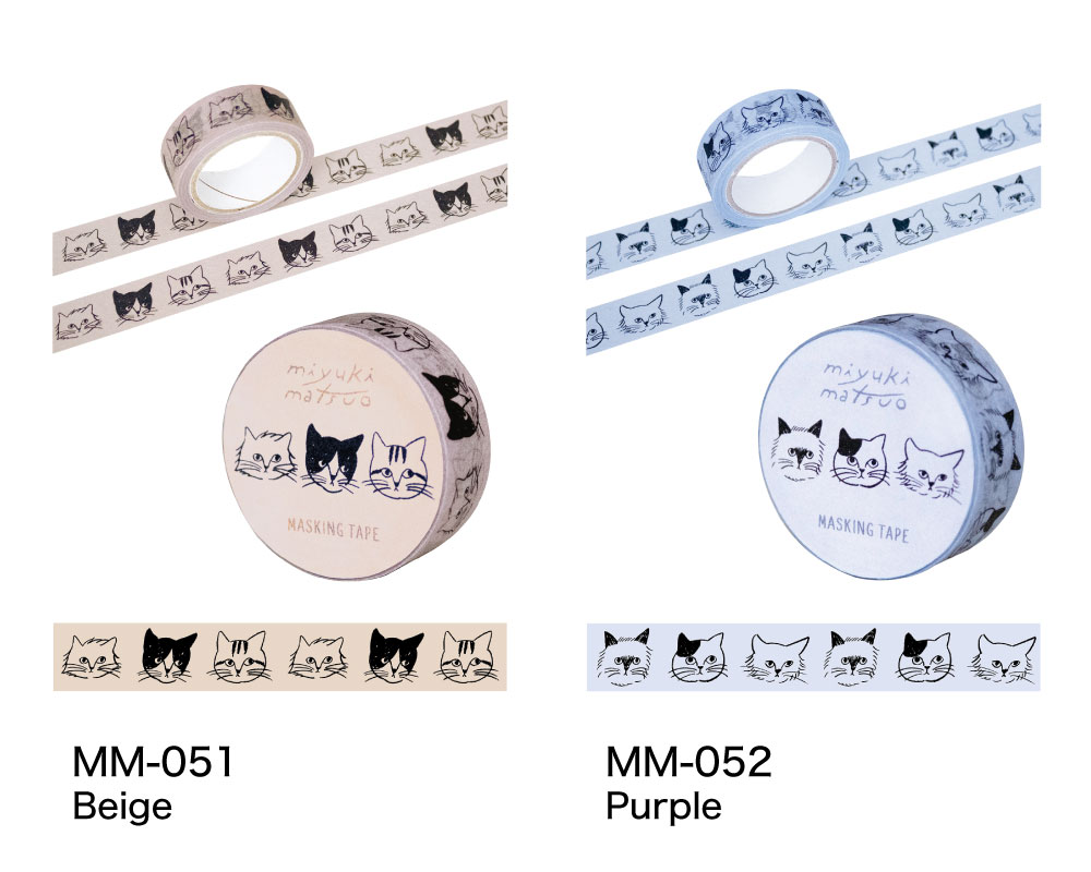 \P2倍+クーポン/松尾ミユキ マスキングテープ|15mm おしゃれ かわいい 動物 猫 ネコ フラワー シンプル 大人 上品|MATOKA マトカ