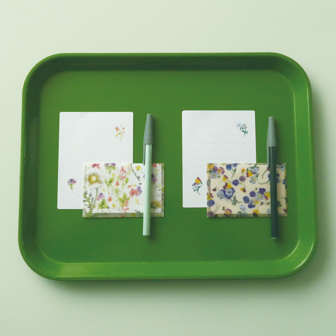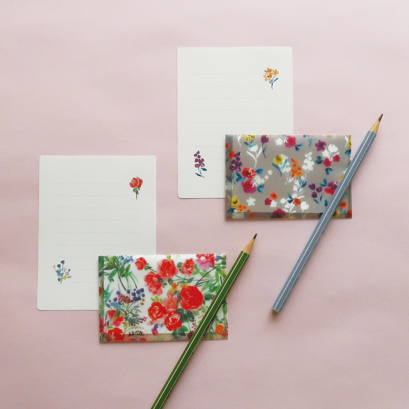 商品説明花柄の透け感がきれいなミニレターセット。 トレーシングペーパーに華やかな花柄をプリントした封筒は名刺が入るサイズです。 便箋は表がざらざら、裏がつるつるの質感がある紙を使用しています。 プレゼントに添えたり、ちょこっと気持ちを伝えたいときに便利。 封筒の柄を邪魔しない、透明の丸い封かんシール付きです。関連カテゴリレターセット|ステーショナリーサイズパッケージ:横幅10.5cm × 高さ13.0cm × 厚さ0.4cm仕様便箋 6枚 封筒 3枚(郵送不可) 封かんシール 3枚 OPP袋入り原産国日本メーカーエルコミューンご注意事項▼「メール便」をご利用の前にご確認ください▼ ・「メール便」は「A4サイズ (21cm×29.7cm )」「厚さ2.0cm」未満の商品が対象となります。 ・ご注文商品の送付先は、確実にお届けが可能な ご住所とお名前のご入力をお願い致します。 ■「メール便」のメリット ・通常の宅配便より配送料が割安となっております。 ・商品受け取り時のサインが不要で、ご自宅のポスト(集合ポスト)への 直接投函となります。 ※ ご自宅のポストへは必ず、お名前の分かる表札をお付け下さい。 ■「メール便」のデメリット ・発送後の「追跡番号」がございません。 ・「日時指定」ができず配達までに「約 3-7日」のお時間がかかります(土日曜 / 祝日 休配)。 ・追跡番号のない「ゆうメール便」は「後払い決済」をご利用いただけません ・「破損・盗難」「住所間違い等での不達」「お荷物の遅延」の場合、一切の商品補償がございません。 ※ 迅速さ・正確さ・補償を重視される場合は「宅配便(送料 550円-)」を お勧めいたします。関連ワード可愛い おしゃれ レター レターセット 手紙 手描き イラスト 花 フラワー ボタニカル 植物 日常使い 贈り物 お礼 お祝い 便箋 シール 封筒 ミニ 小さめCLAIR クレール ミニレターセットB花柄の透け感がきれいなミニレターセット。トレーシングペーパーに華やかな花柄をプリントした封筒は名刺が入るサイズです。便箋は表がざらざら、裏がつるつるの質感がある紙を使用しています。プレゼントに添えたり、ちょこっと気持ちを伝えたいときに便利。 ミニサイズでも受け取った瞬間パッと華やかな気分になりますよ◎封筒の柄を邪魔しない、透明の丸い封かんシール付きです。 関連商品はこちら