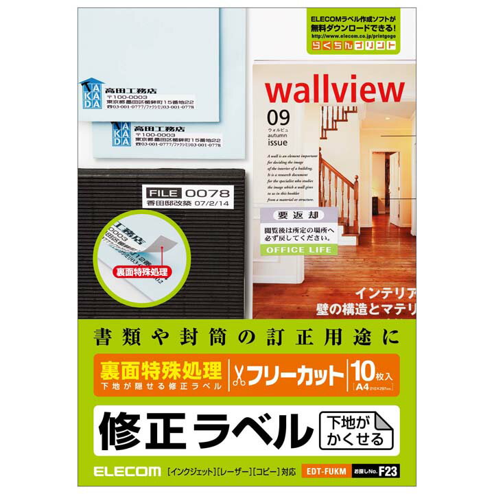 エレコム フリーカットラベル 修正ラベル A4サイズ 10シート入り ELECOM EDT-FUKM