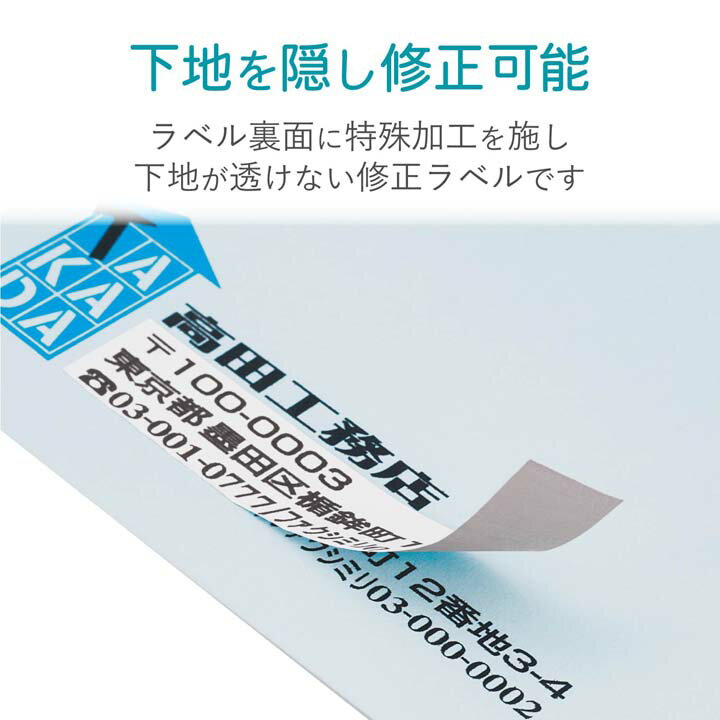 ■ラベル裏面に特殊加工を施す事により、隠したい部分に貼ると下地が隠せる修正用ラベル●インクジェット・レーザープリンタ・コピー機でもご使用できるマルチプリントタイプの用紙 ●裏面特殊加工で下地が隠せます ●お探しNO,F23 ●紙厚0.167mm 坪量143g/m2■用紙サイズ:A4サイズ 10枚入り■一面サイズ:210×297mm■カラー:ホワイト■タイプ(用紙):マルチプリント用紙エレコムダイレクトショップJANコード:4953103169531