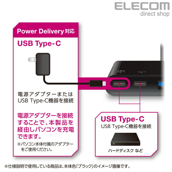 エレコム Type-C タイプC typec コネクタ 搭載 USBハブ USB Power Delivery対応 USB 3.1 Gen2対応 USB ハブ タイプC typec C ブラック ELECOM U3HC-A424P10BK